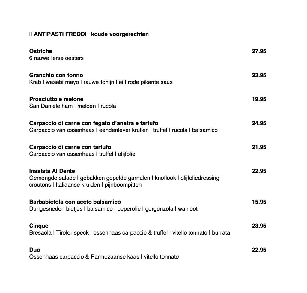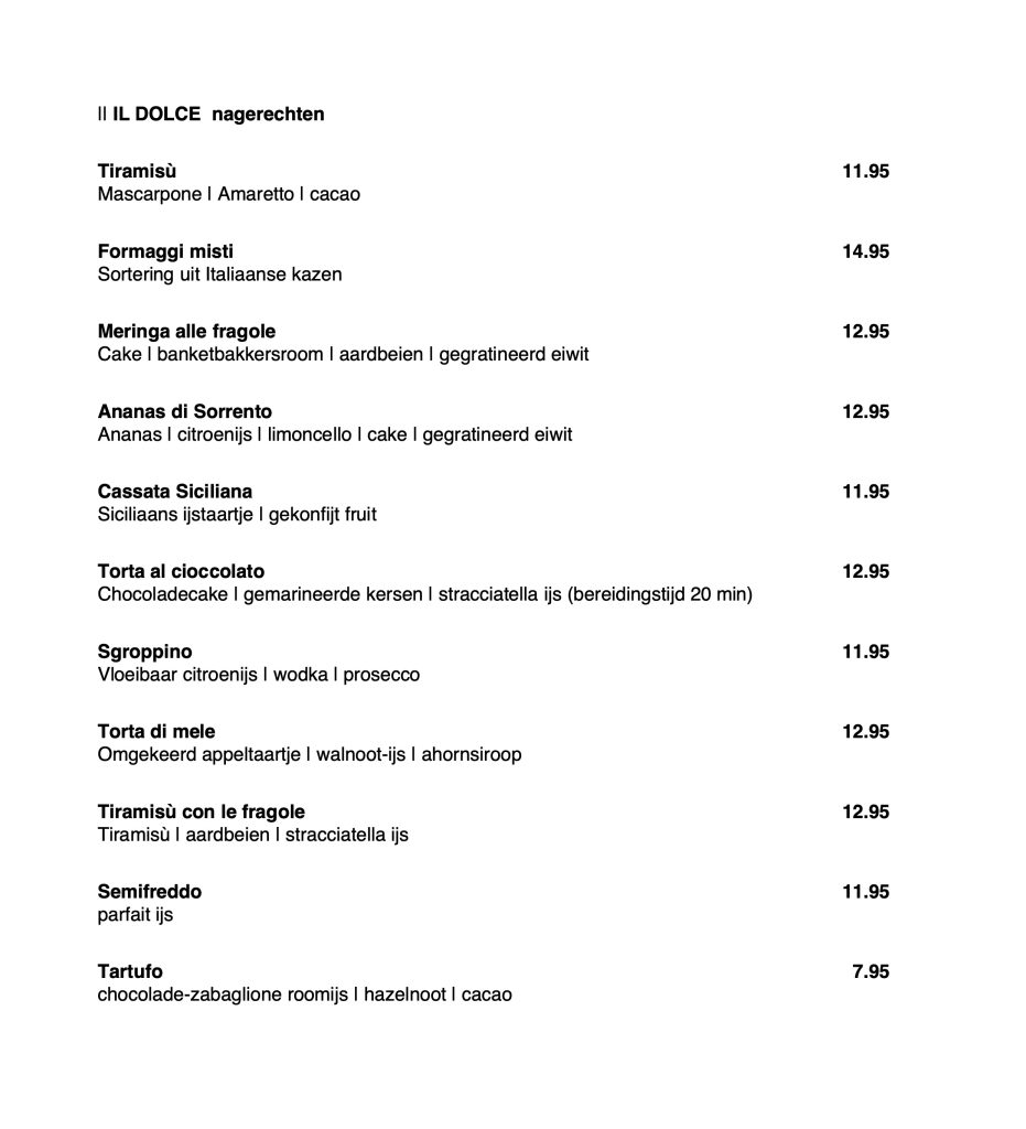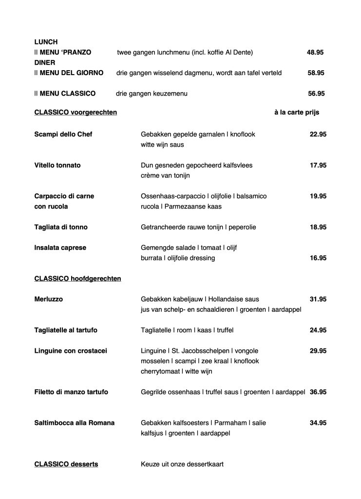 Bij gezelschappen vanaf 6 personen krijgt u de keuze uit ons Menu Classico.